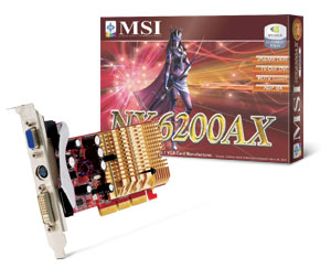 MSI NX6200AX-TD128LF, 6200/128MB DDR/AGP/64-bit/Engine 350MHz/Memory 400MHz/TV-Out/DVI/Zero noise/Low profile